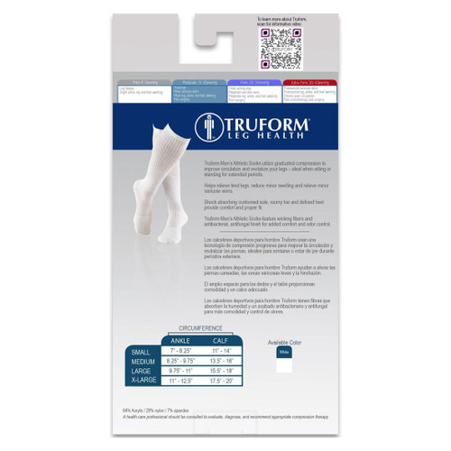 The Truform 1933 men's athletic white compression socks provide moderate, medical-grade support in a durable, activewear design. Featuring 15-20 mmHg of graduated compression, these socks are ideal for enhancing circulation, reducing leg fatigue, and alleviating discomfort from prolonged sitting, standing, or physical activity.