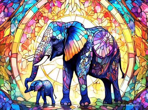 This breathtaking 1,000-piece puzzle features a mother and baby elephant in a radiant stained-glass style that glows with vibrant color and heartfelt emotion. Intricately designed with rich jewel tones and warm light, it beautifully captures the bond between parent and child. A striking and meaningful puzzle that’s perfect for art lovers and animal admirers alike!