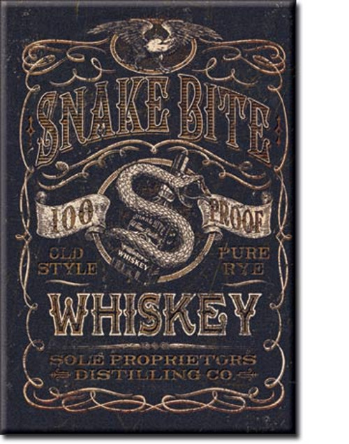 Magnet featuring an advertisement for Snake Bite Whiskey.